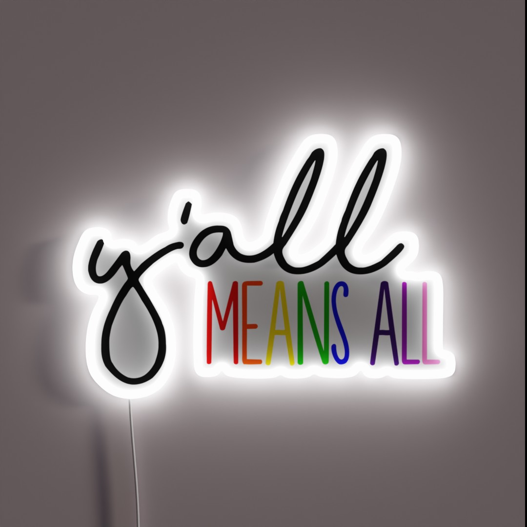 Make a bold statement with our vibrant, touchable, and safe Y all means all RGB neon sign. Crafted using cutting-edge LED technology, this stunning sign is not only durable but also non-fragile, unlike traditional glass neon signs.