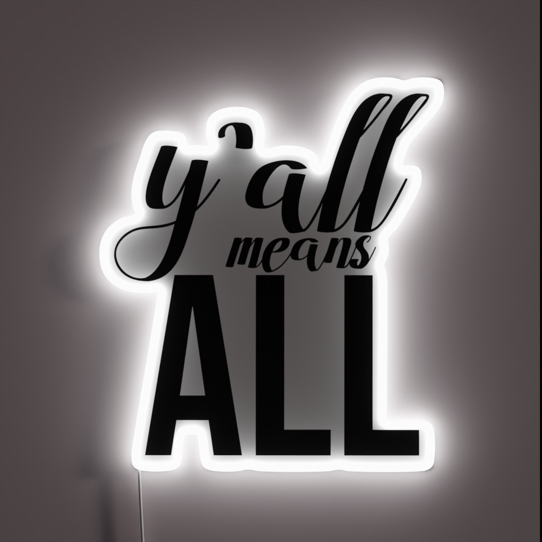 Customizable 5V RGB Neon Sign with ‘Y’ALL Means All’ wording, perfect for Southern homes and businesses to showcase their personality and flair.