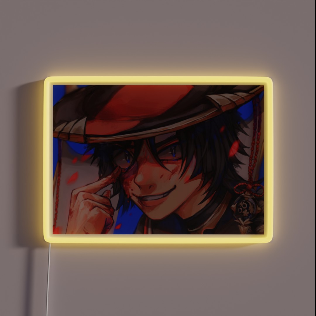 Official Yandere Scaramouche Genshin Impact LED light box, featuring vibrant RGB colors and a stunning neon design perfect for gamers and fans of Teyvat’s most eccentric character.