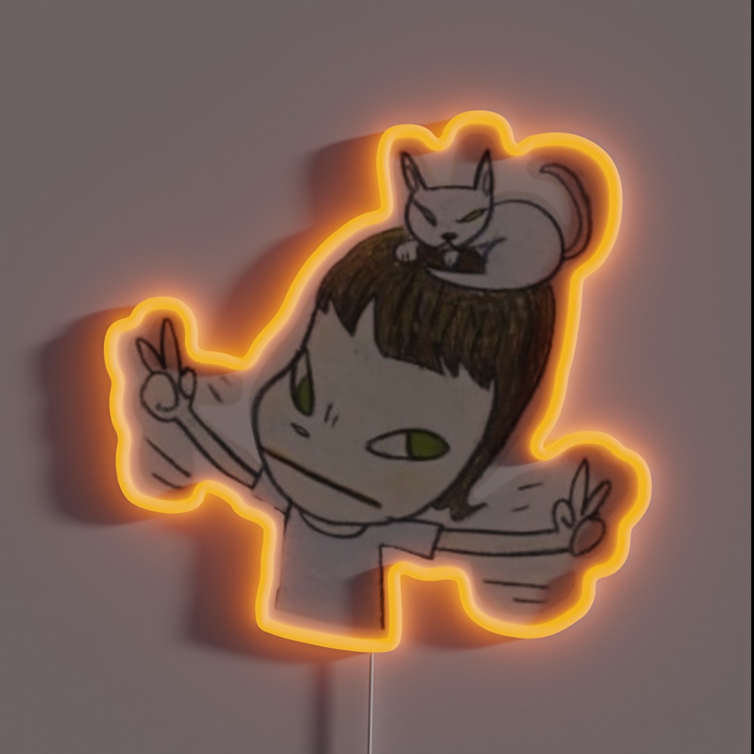 Vibrant Yoshitomo Nara-inspired RGB neon sign that adds a pop of colorful artistry to any room, featuring the iconic character’s whimsical style in glowing neon lights.