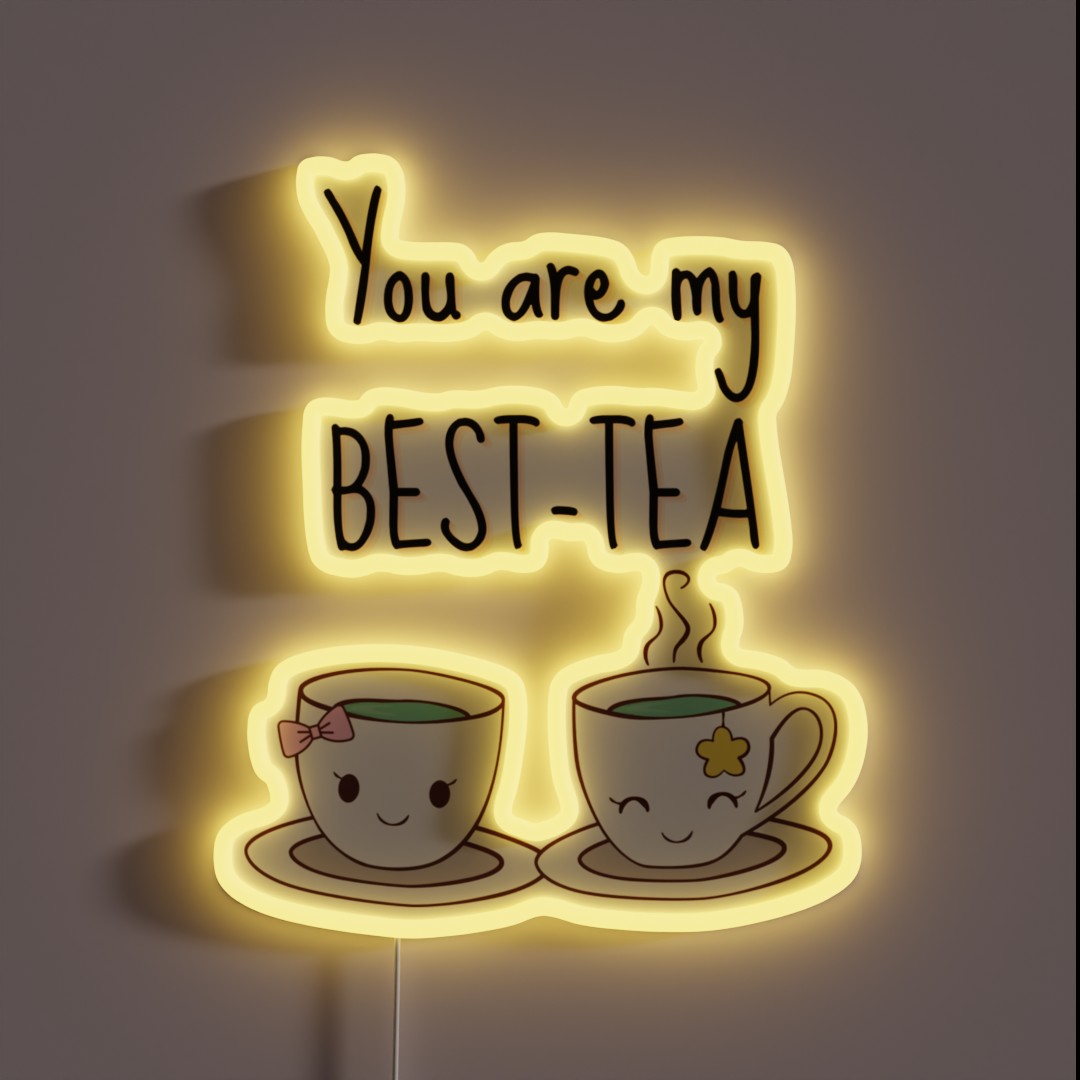 Add a dash of humor to your space with our ‘You’re My Best Tea’ neon sign, a hilarious pun perfect as a gift for your BFF or best friend, featuring vibrant RGB colors.