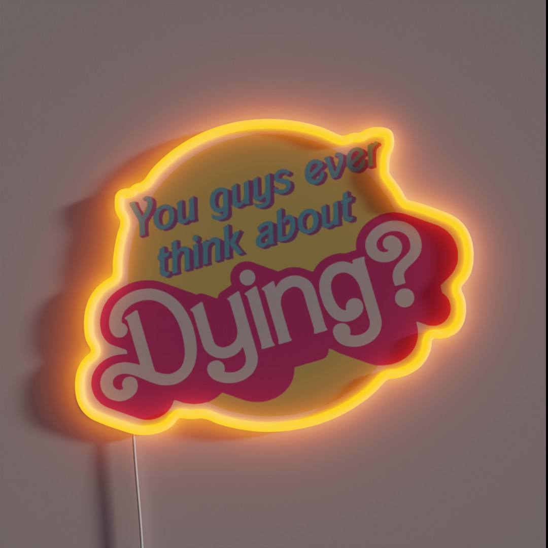 Add a pop of dark humor to your space with our ‘You Guys Ever Think About Dying’ RGB neon sign, a quirky twist on the classic Barbie theme.