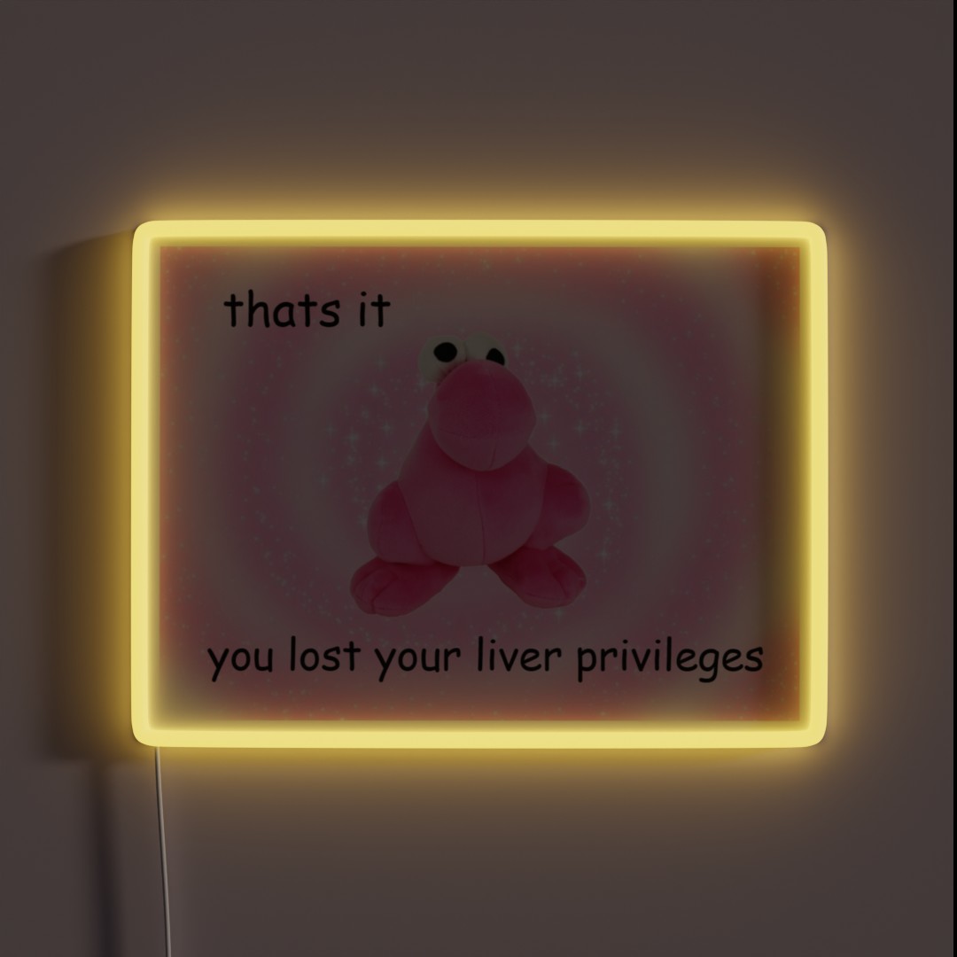 With its unique design, customizable lighting, and touch-safe operation, the “You Lost Your Liver Privileges” RGB neon sign is the perfect addition to any room. Order yours today!