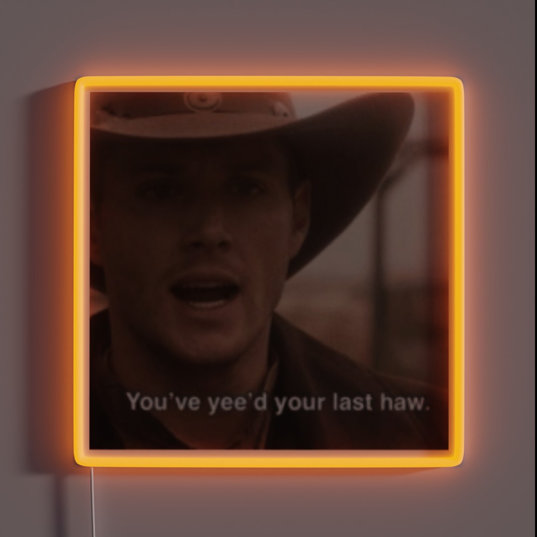 Electric and eye-catching, the ‘You’ve Yee’d Your Last Haw’ RGB Neon Sign is a hilarious addition to any gamer’s room, office, or man cave. Illuminating in vibrant colors, this custom neon sign brings playful humor to spaces everywhere.