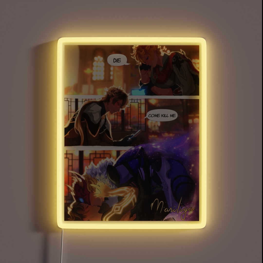 Illuminate your space with the Zhongli Childe Genshin Impact RGB Neon Sign, a vibrant tribute to the beloved characters from the popular game, featuring high-quality LED lighting and a sleek design perfect for fans of gaming and pop culture.