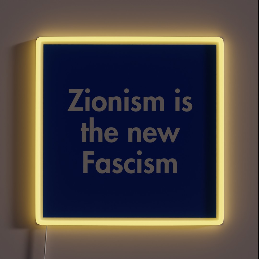 **Statement Wall Sign**: “Zionism Is The New Fascism | Israel Palestine Boycott Divest Sanction BDS” – A bold, eye-catching RGB neon sign for your home or office, sparking conversation about social justice, human rights, and politics.